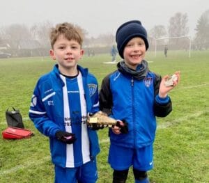 Accompanying plenty of layers, hats and gloves were some excellent saves from goalkeeper George and a first goal of the season for Ethan – efforts which earned them the team’s man of the match awards.